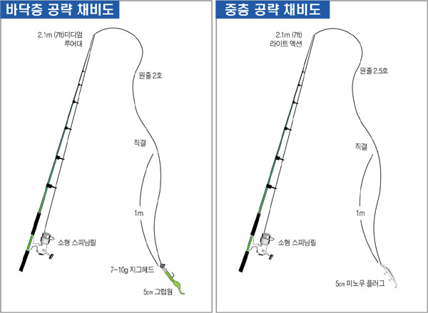 쥐노래미부터 도다리까지 거의 모든 바닥층 어종을 이 채비로 낚을 수 있다.
