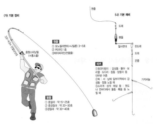 이들 장르에 따른 기본 낚시 장비와 채비, 미끼를 살펴봅니다.