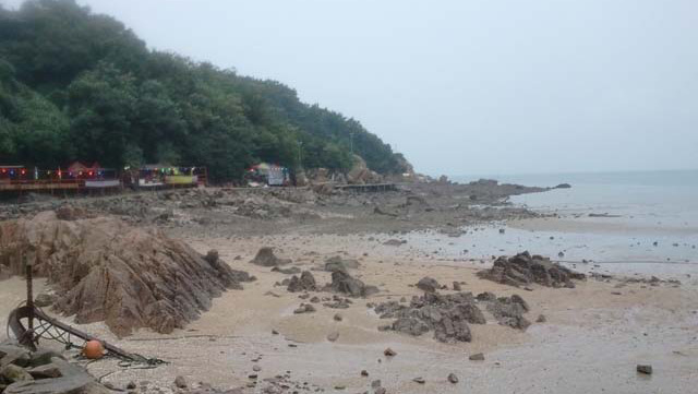 물때에 따라 물이차서 안보이다가 물이빠지면 보이는 굉장히 조그만한 방파제 같은 인공 구조물이 있는데요