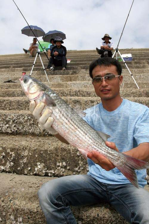 ▲탄도항에서 굵은 숭어를 낚은 허창걸씨. 탄도항은 숭어 떡밥낚시가 잘 되는 곳으로도 유명하다.