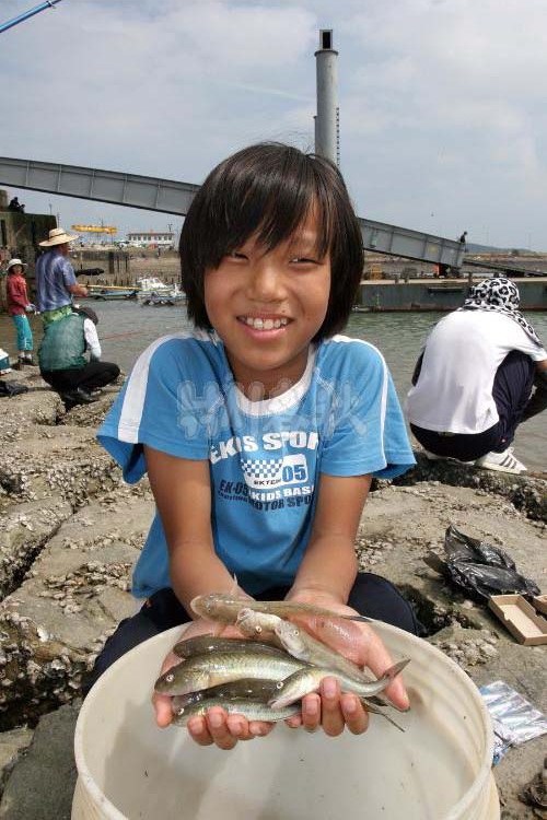 ▲“망둥어는 던지면 물어요” 수원에서 온 혁재혁군(화양초등학교 5학년)의 망둥어 자랑.