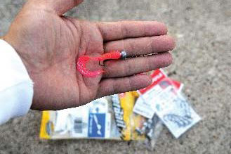 ▲ 낮에 우럭 킬러로 통하는 빨간색 3인치 웜.