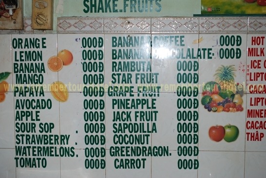 주인장의 설명으론 과일값이 계절별로 시기별로 수시로 다르기 때문에 가격을 정해놓을 수가 없단다. 그때 그때 변하는 가격... 이게 베트남이다.