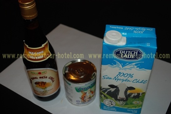 첨가물로 사용되는 과일용 시럽, 연유, 그리고 우유