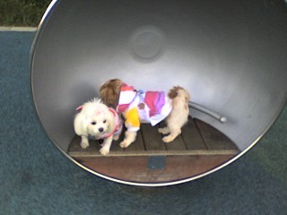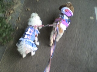 실밥 풀고 첫 나들이..에 기운 뻗친 민트^^ 질질 끌려가는 강쥐계의 천상 여자 꽃님^^