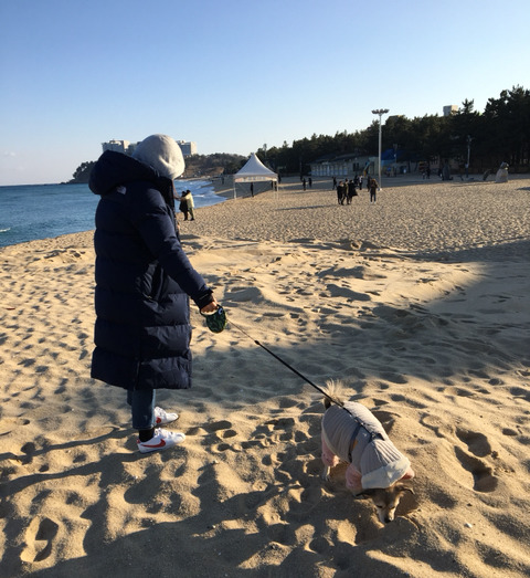 모래위에 발바닥이 너무 귀여워서 ㅋㅋㅋ