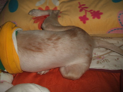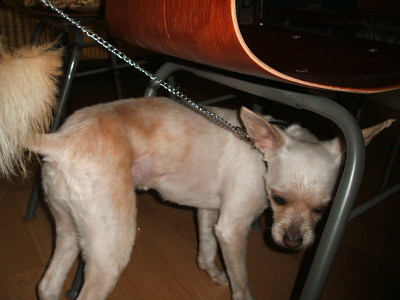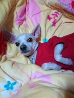 <미용하고 캥거루가 된 시온. ㅋㅋ 자다 말고 "너 뭐해?" 하는 표정>