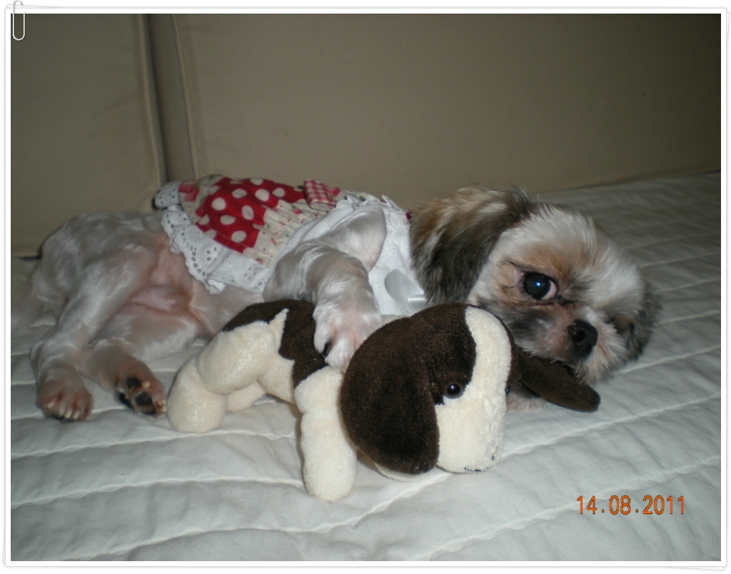 찬희 자는 틈에 인형을 안겨주니 강아지 귀를 살짝 물면서 좋아라하네요.