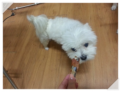 요 간식은 1개만 왔길래 보송이 줬어요 !ㅎㅎ