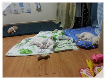 세 분이 모두 저녁을 먹고 간식을 먹고 꿈나라로 가셨습니다~