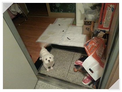 보송이가 거실로 나가서 쉬야를 하고 왔어요! 백퍼입니다 ㅎㅎ