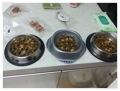 오늘은 닭고기 수제사료 + 이벤트에서 받은 모듬 찐 어묵을 데워서 섞어주었습니다!