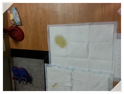 아마 보송이는 패드에 용변을 볼 곳이 없으면 바닥에 응아하는 것 같아요 ㅎㅎ
