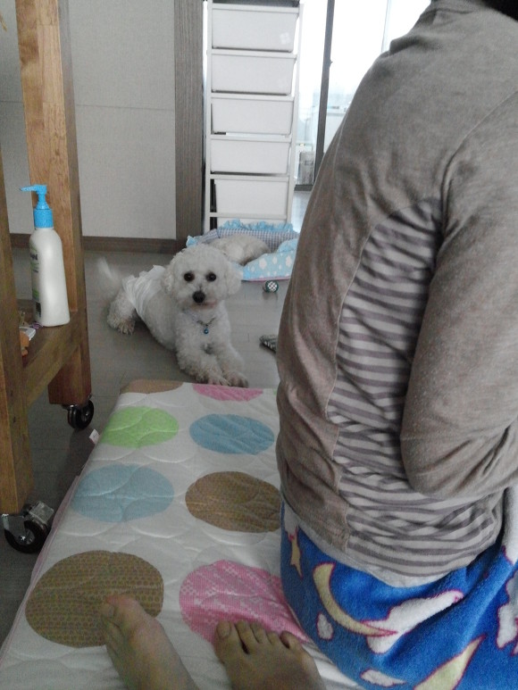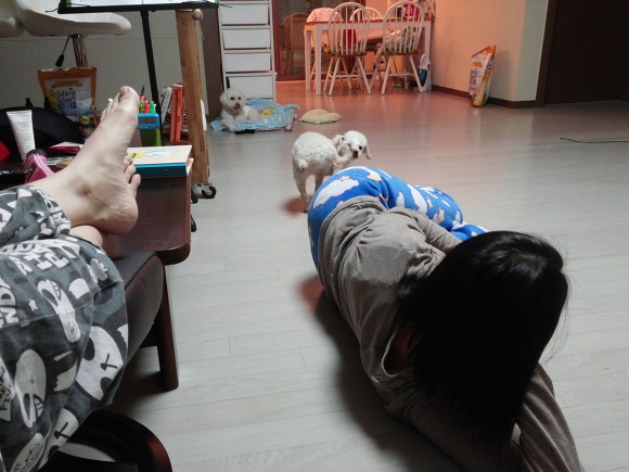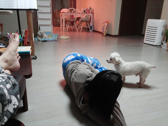 친정집 애기두 이러거든요~ 요가매트에 막 올라와서 꼬리흔들구~ 부비구~~
