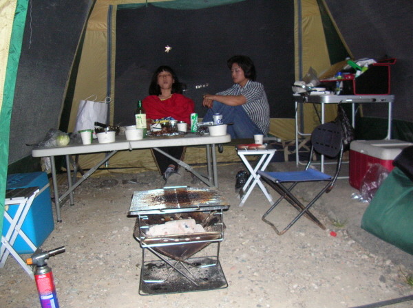 아버님과 윤지는 낚시를 하고 아내와 나는 텐트를 치고 식사준비를 한다.