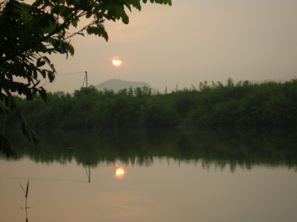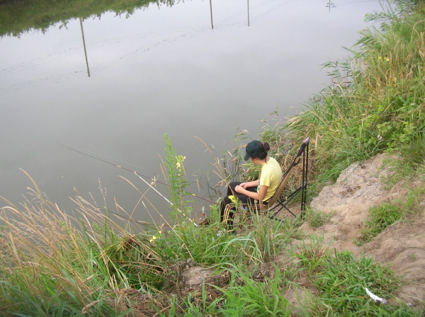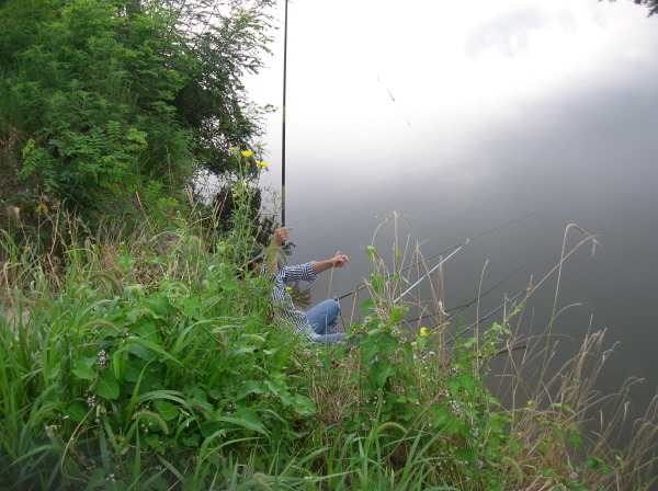 다음날 아침 친구들과 약속이 있다는 윤지를 집에 데려다 주고 돌아오니 총알을 달아 둔 짧은 낚시대 한대가 건너편 분들께 가있고