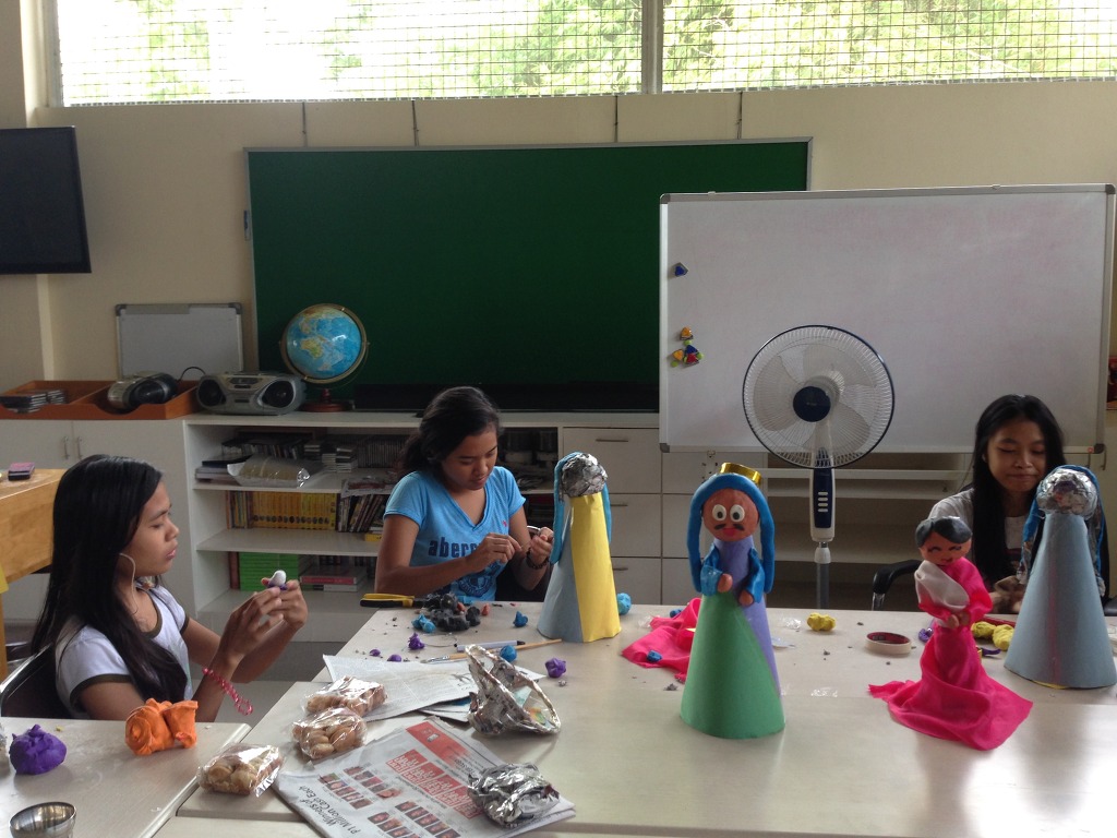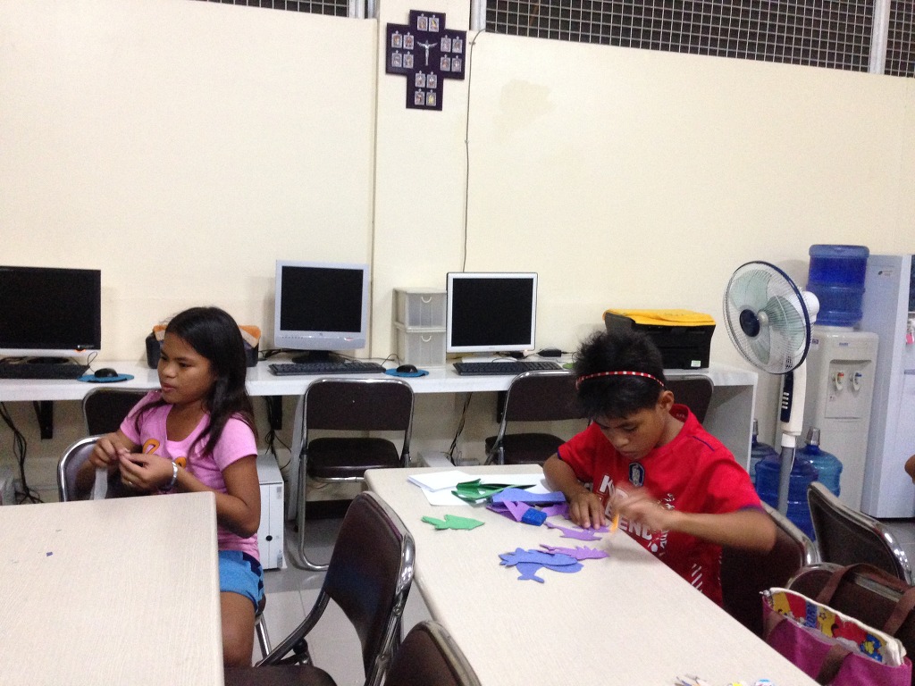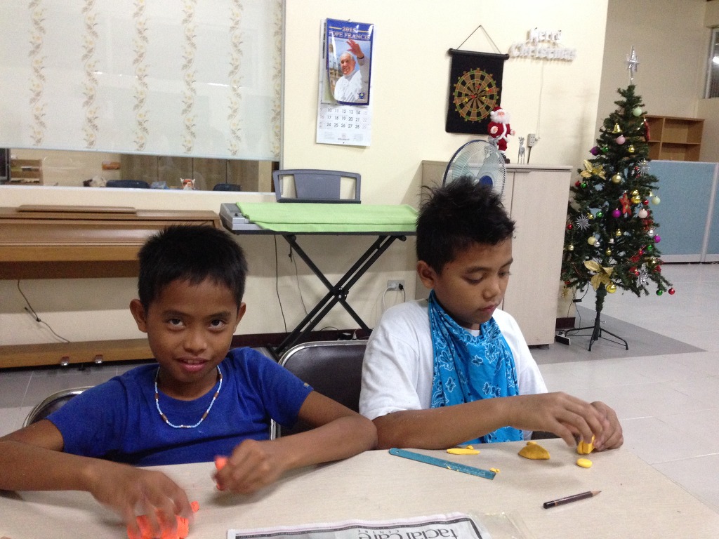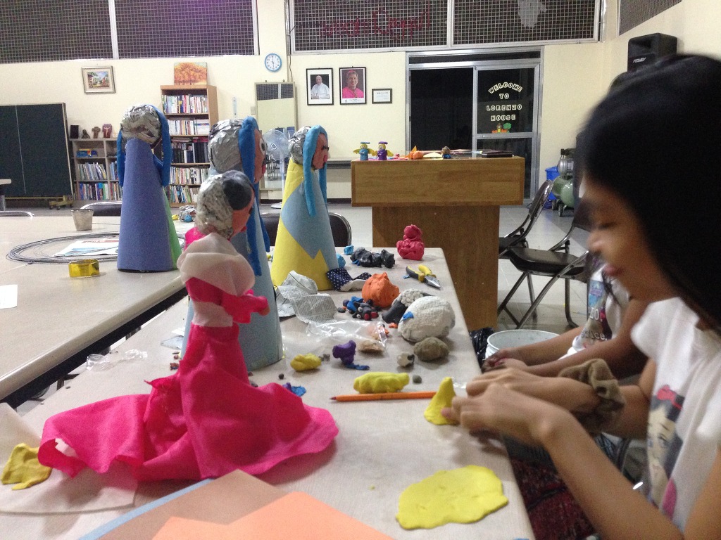 로렌조 아이들과 엔젤 아이들은 각자 본인들이 봉헌할 구유 장식을 만드느라 심각합니다.