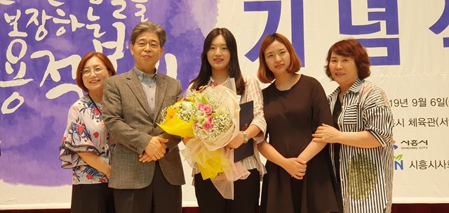 ▲시의회 의장상 유공표창: 이옥희(연성지역아동센터)·신미경(시흥시장애인자립생활센터)·김두남(시흥시북부노인복지관)·서정일(작은자리복지관)·김윤혜(목감복지관) 5명