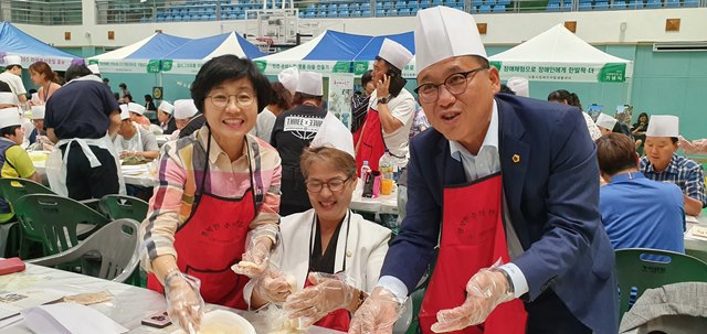 이상덕 시흥시사회복지협의회 사무국장의 사회로 1부 내빈소개, 기념사 및 축사, 사회복지 유공자 포상, 2부 ‘작은자리 무용단’의 공연을 시작으로 백미 후원 전달식, 송편‧인절미 빚기, 뽐내기 경연 시상 순으로 진행됐다.