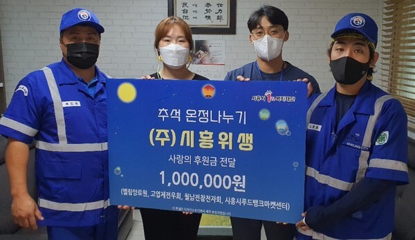 시흥위생은 후원금 1백만 원을 시흥시1%복지재단에 전달했다. 후원금은 시흥시푸드뱅크마켓센터와 생활시설인 엘림양로원, 보훈단체인 고엽제전우회, 월남전참전자회로 연계해 도움이 필요한 지역주민에게 전달할 예정이다.