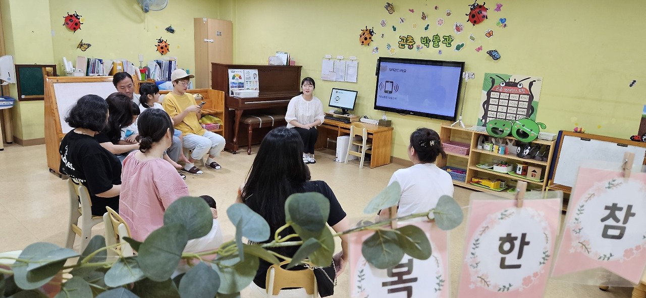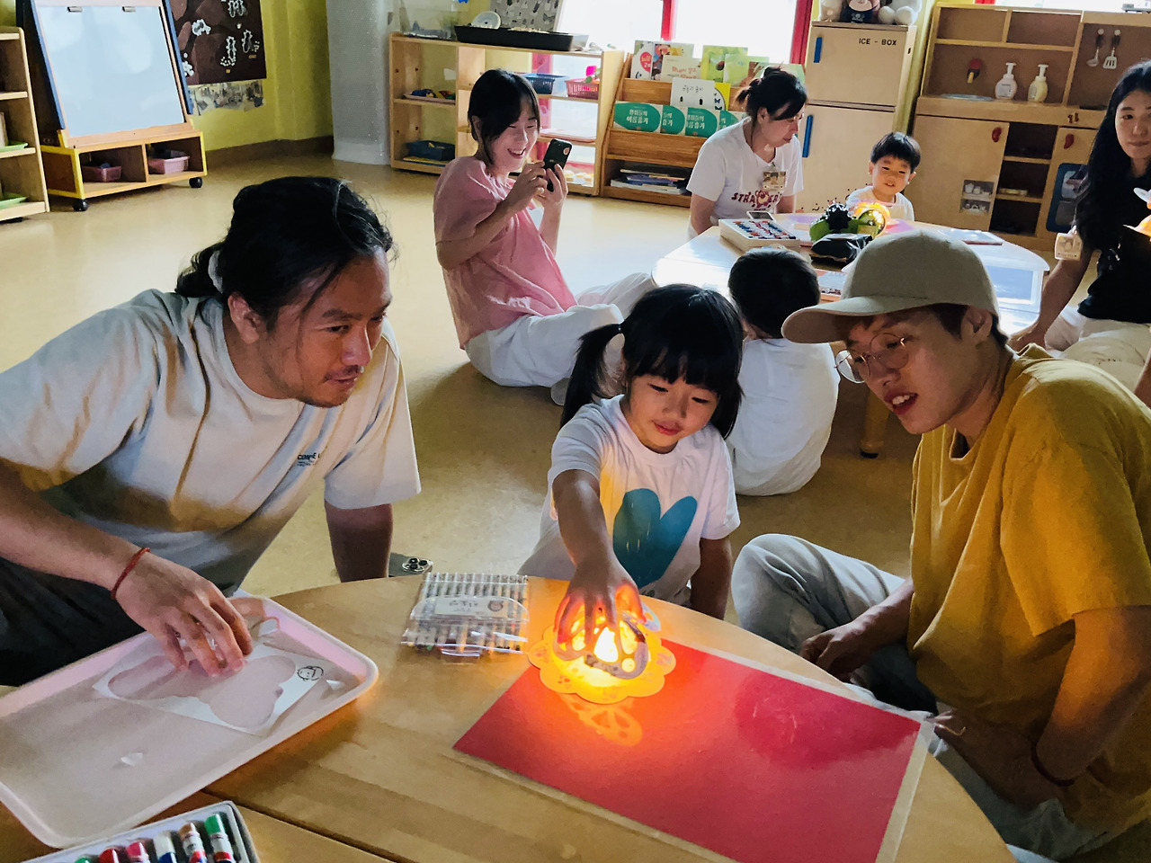 | 꽃잎반에서 3월동안 진행해온 곤충프로젝트! 곤충에 대해 관심이 많아진 것 같아보이긴 했지만 어린이집에서 어떤 활동들, 어떤 놀이들을 하고 있는지 궁금하셨죠?😍 우리들의 모습을 보여드리기 위해 가정을 초대하여 곤충프로젝트 발표회를 열었어요🥰 꽃잎이들이 좋아하는 체육수업이 어떻게 진행되는지 직접 참여도 해보고~ 교실로 돌아와 나비 조명도 만들어보았어요🥰 교실에서 친구들과 함께 하던 오후간식시간도 오늘은 가족들과 함께해서 더 소중한 시간이 되었어요😍 어린이집에서 어떤 모습인지, 프로젝트를 하면서 어떤 변화가 있었는지 알 수 있는 시간이 되셨죠?😍 저도 참여해주신 부모님들을 보면서 우리 아이를 얼마나 대견스러워하고, 사랑하시는지 알 수 있게된 시간이었답니다❤️ |
