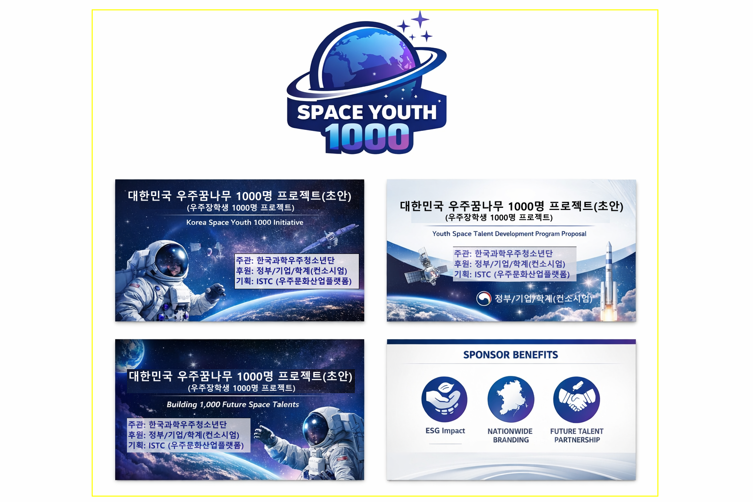 대한민국 우주꿈나무 1000명 프로젝트(초안) (우주장학생 1000명 프로젝트) 주관: 한국과학우주청소년단 후원: 정부/기업/학계