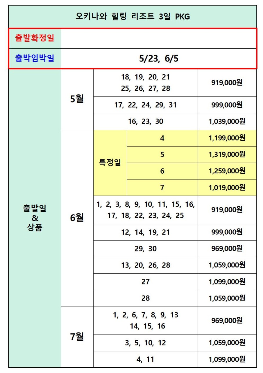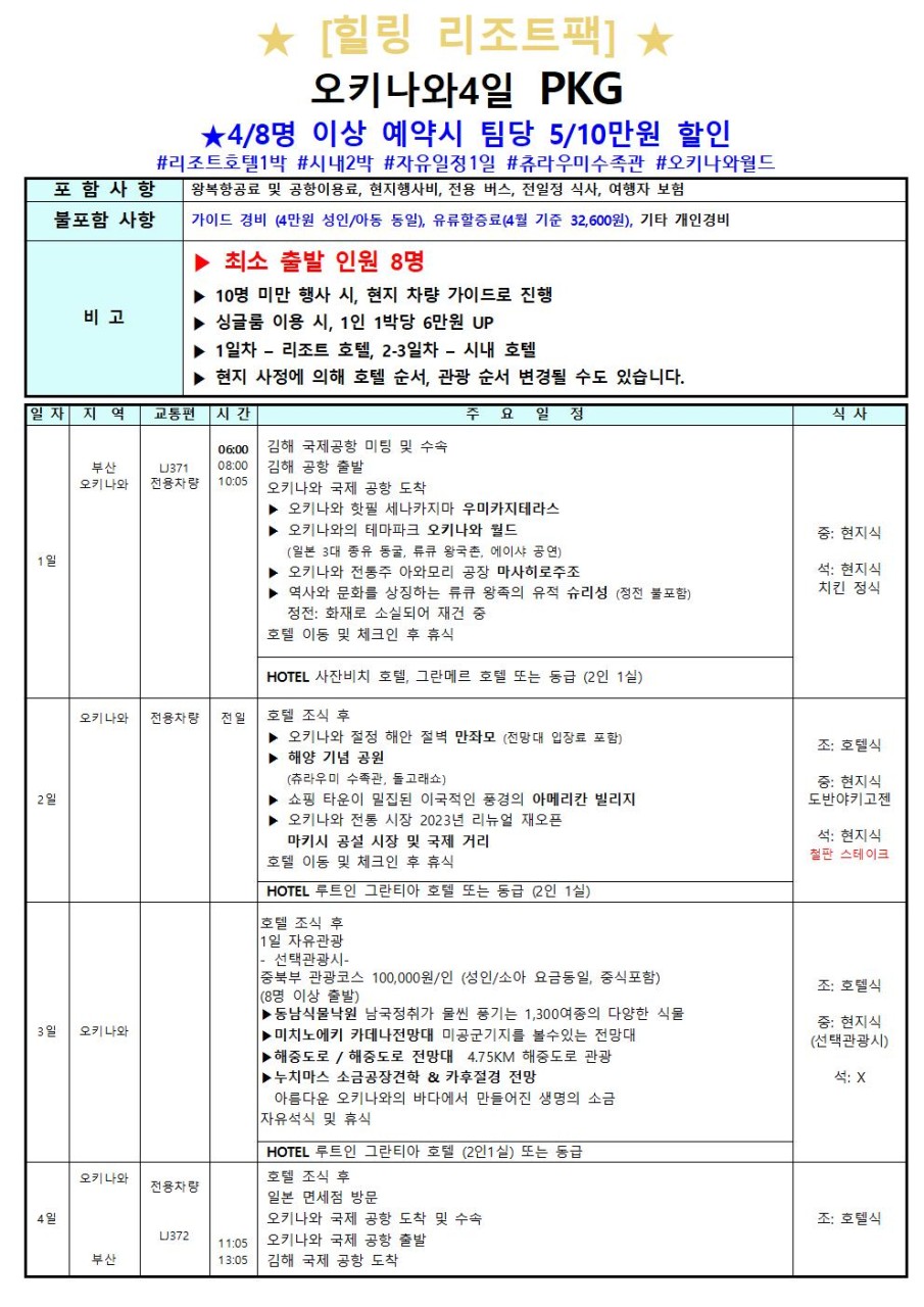 ❤️오키나와 힐링 리조트 PKG 2박 3일 OR 3박 4일❤️