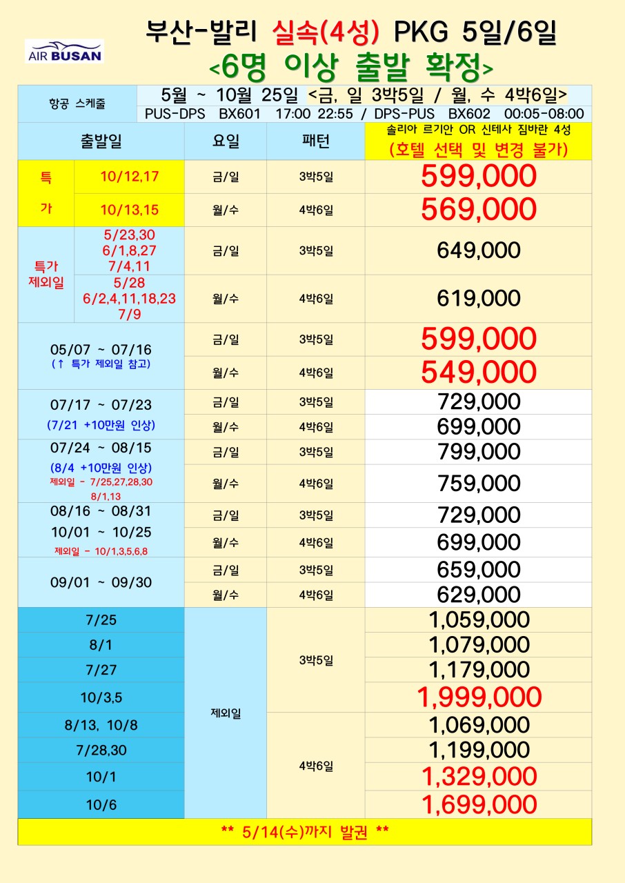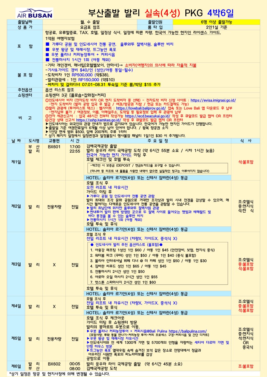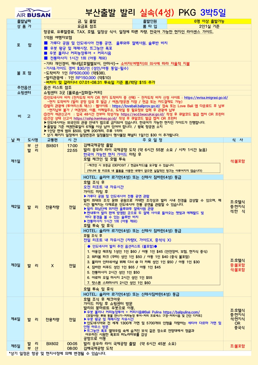[BX]부산-발리 실속(4성) PKG 5일/6일