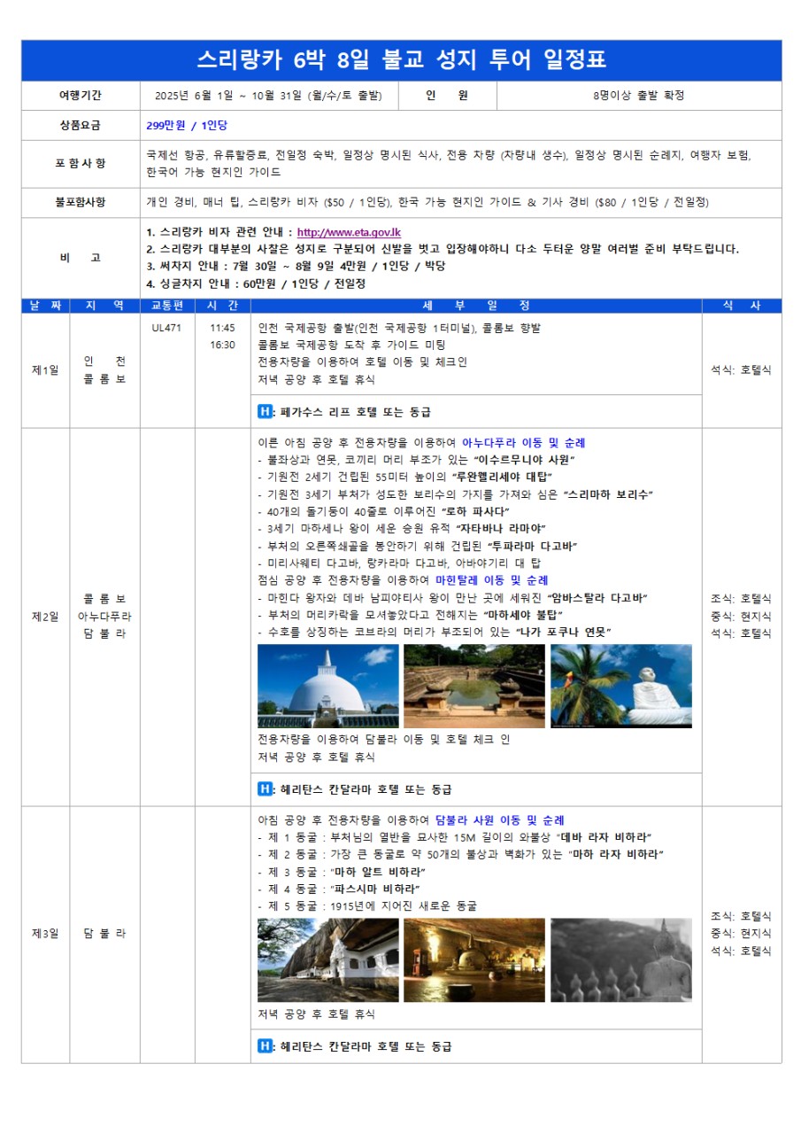 인천출발해외여행🌳불교 문화의 보고 👉 "스리랑카" 불교 역사와 전통의 신성한 발자취를 따라가며 그 깊이와 아름다움을 느껴보세요💁�