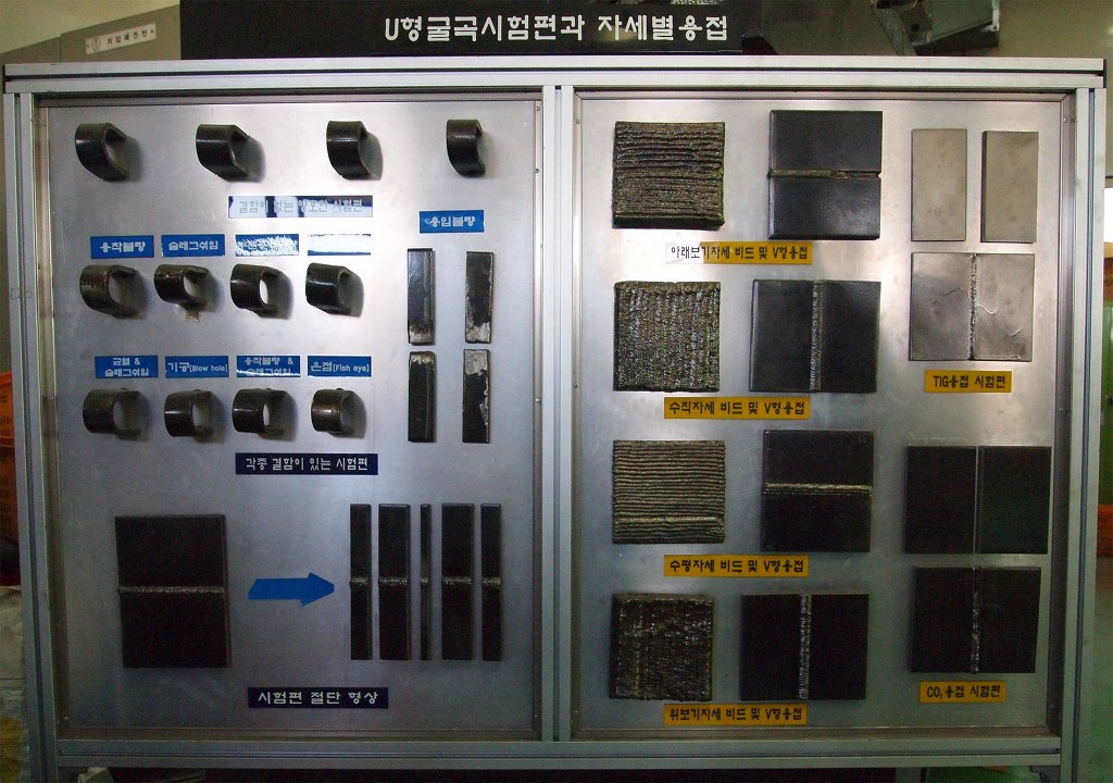 ↑ 교육과정동안 실습하게 될 자세 별 용접 및 U굴곡 시험편