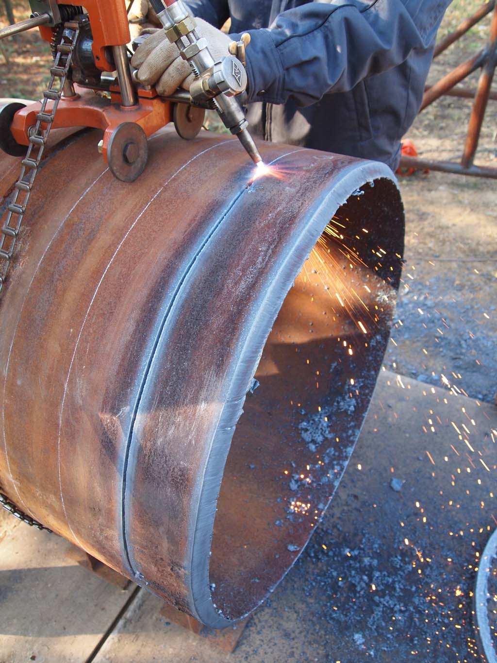 ↑ 대구경 파이프(30인치) 부분 용접 모습