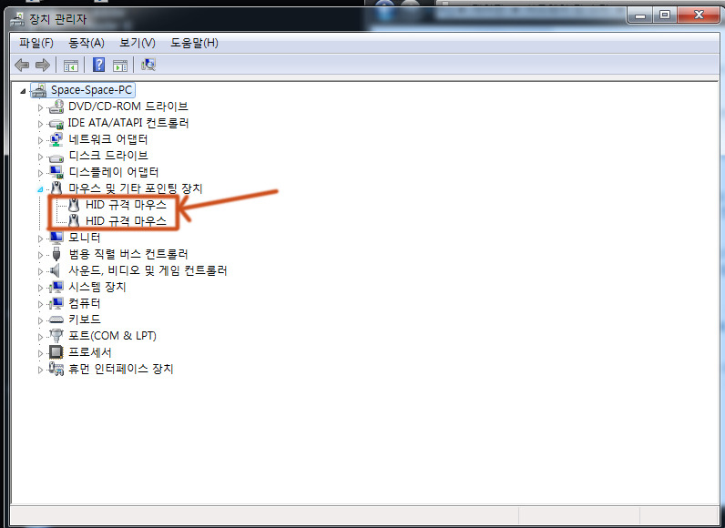 바이오스나 제어판 장치 관리자에서 마우스가 2개 뜹니다.