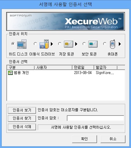 보험사에 문의하니 윈8에서도 로그인 가능하다고 함..