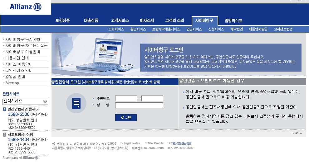다른 사이트(다른 보험사나 은행 등 금융기관)에서는 잘 뜨고 로그인도 잘 되는데 위 사이트의 사이버 창구를 이용하기 위한 로그인 화면(바로 아래 화면)에서만 뜨지 않아서 로그인을 할 수 없습니다