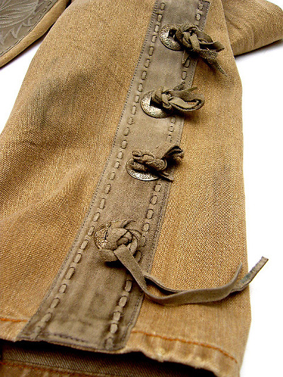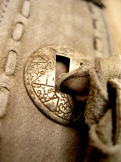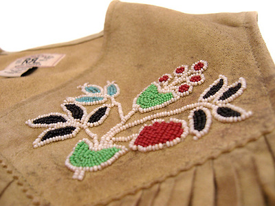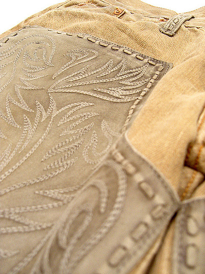 스티치와 레이스등은 레더와 겹겹이 스티칭으로 인디언 스타일 문양을 구현.