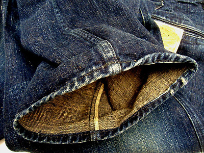 두툼한 헤비데님과 내부 깃에는 베이지의 코듀로이가 적용된, 초기형 더블알엘 극레어 데님 레인저.