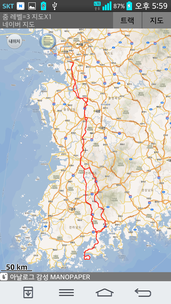 적산거리 876km 16시간 40분 소요 되었습니다.