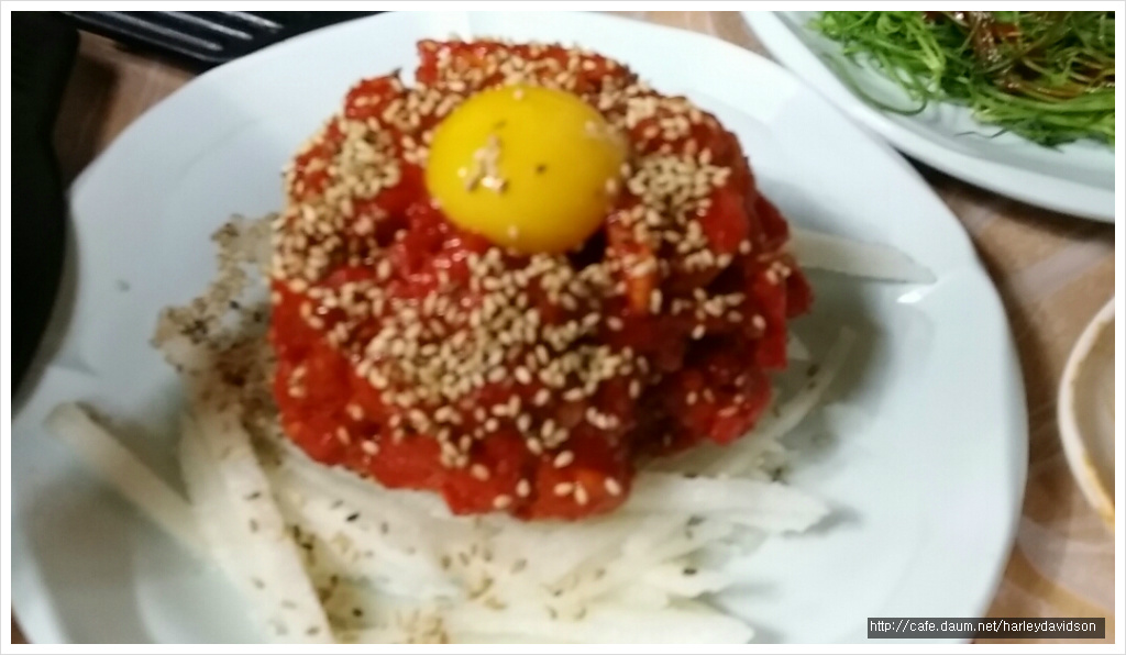 2주전자 때 나오는 육회인데 초점이 안 맞았네요~ ^^;