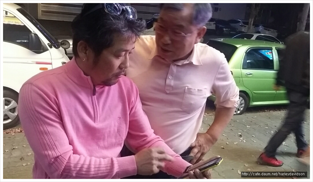 올 가을이나 내년 초쯤 할리의 세계로 입문을 하시려는 블렉홀님께 이런저런 설명을 해주시는 디오게네스님이십니다.