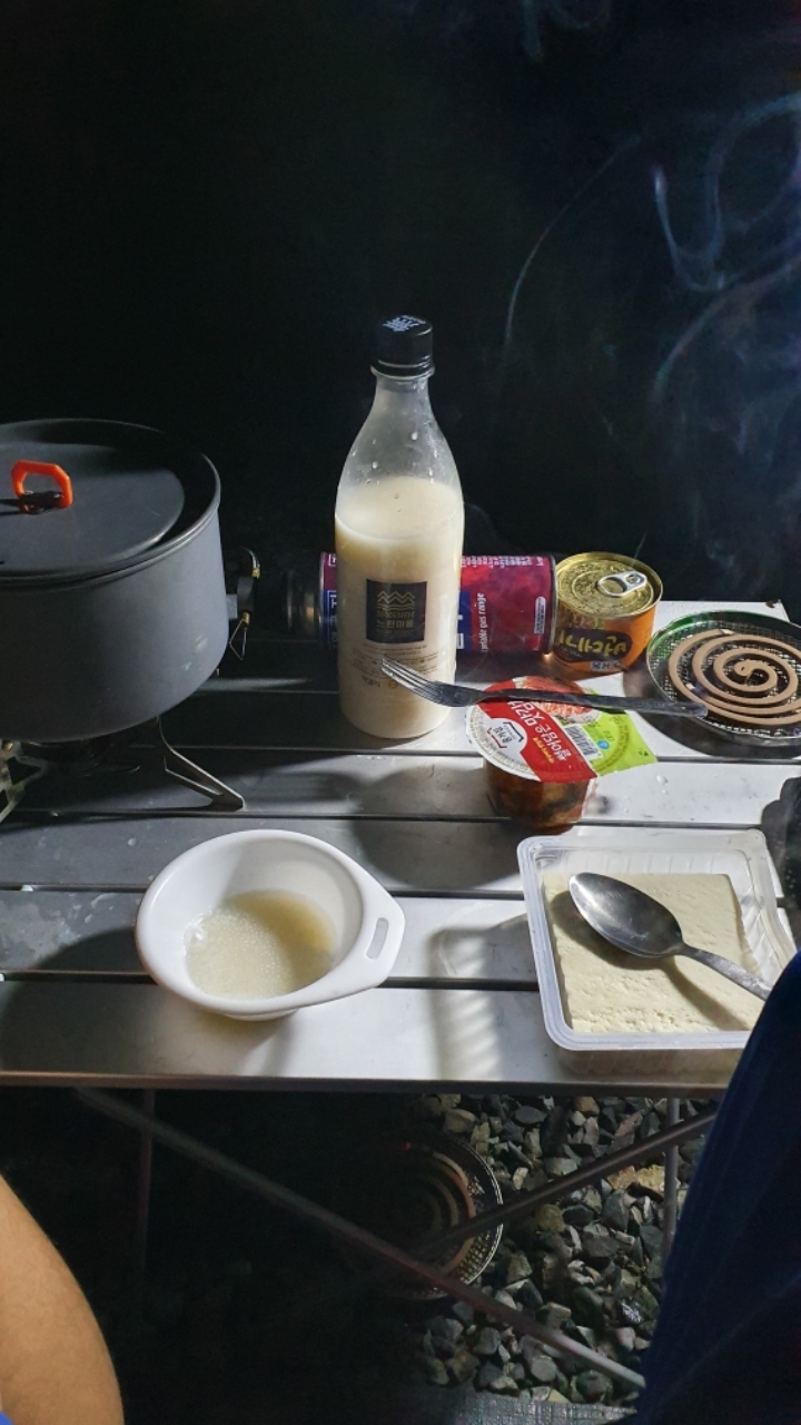 휴가동안 애들데리고 사람많은 바다, 계곡은 다 가봤기에 쏠캠은 조용한데로 가자~하고 찾다가, 몇년전 카이져님의 백두대간 코스 따라가던 중 들렀던 매봉산 바람의 언덕 생각이 번뜩! 이 장소가 매력적인게 날씨만 좋으면 일몰, 일출을 텐트 안에서 다 볼수 있겠더라구요. 그러나 와보니 현실은 구름 속 ㅠㅠ. 단지 초입에 배추 농사 때문에 8,9월은 출입을 자제해달라는 공지도 있고 해서 아쉽지만 내려와 너덜샘 야영장으로 방항을 돌렸습니다. 헐 근데 여긴 장박 캠핑카 천국이군요.(무료야영장입니다.) 캠핑카 사이 겨우 삐집고 들어와 귀탱이에 텐트치고 막걸리 한잔 걸집니다.^^