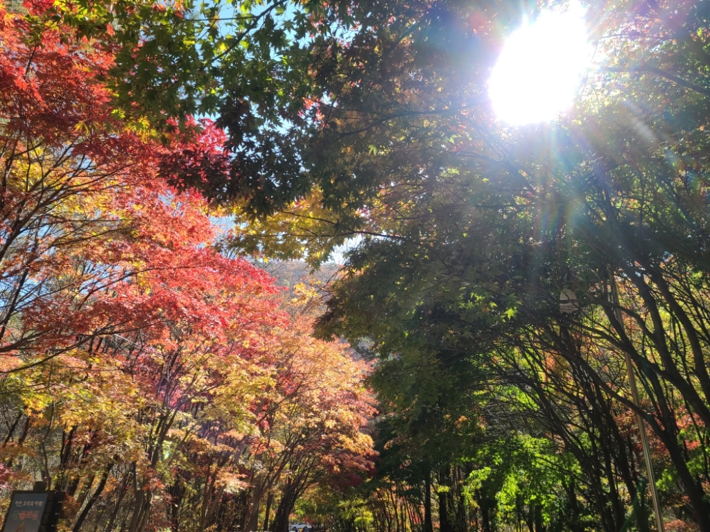 단풍님들을 조금 이나마 따쉽게 해주려 바짝 내려 쬐여 주는듯 합니다