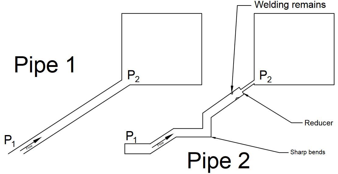 두 개의 파이프에서 하나는 직선이고,