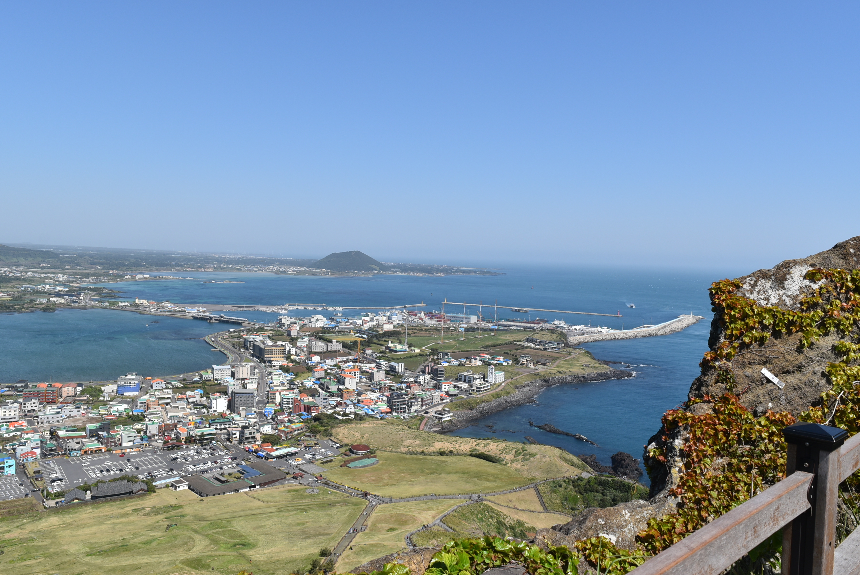 미세먼지에도 불구하고 성산일출봉의 전망은 멋졌습니다.