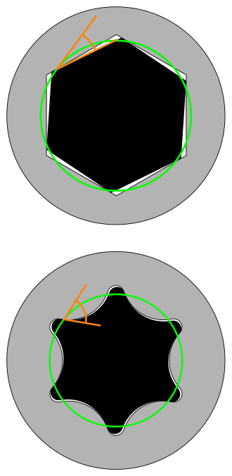 조일 때 힘이 육각의 모서리에만