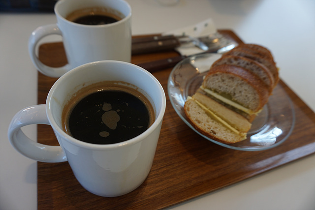따끈한 커피와 앙버터 시켜