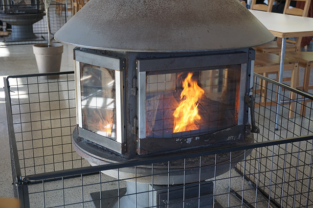 참나무 장작 화로 쬐며