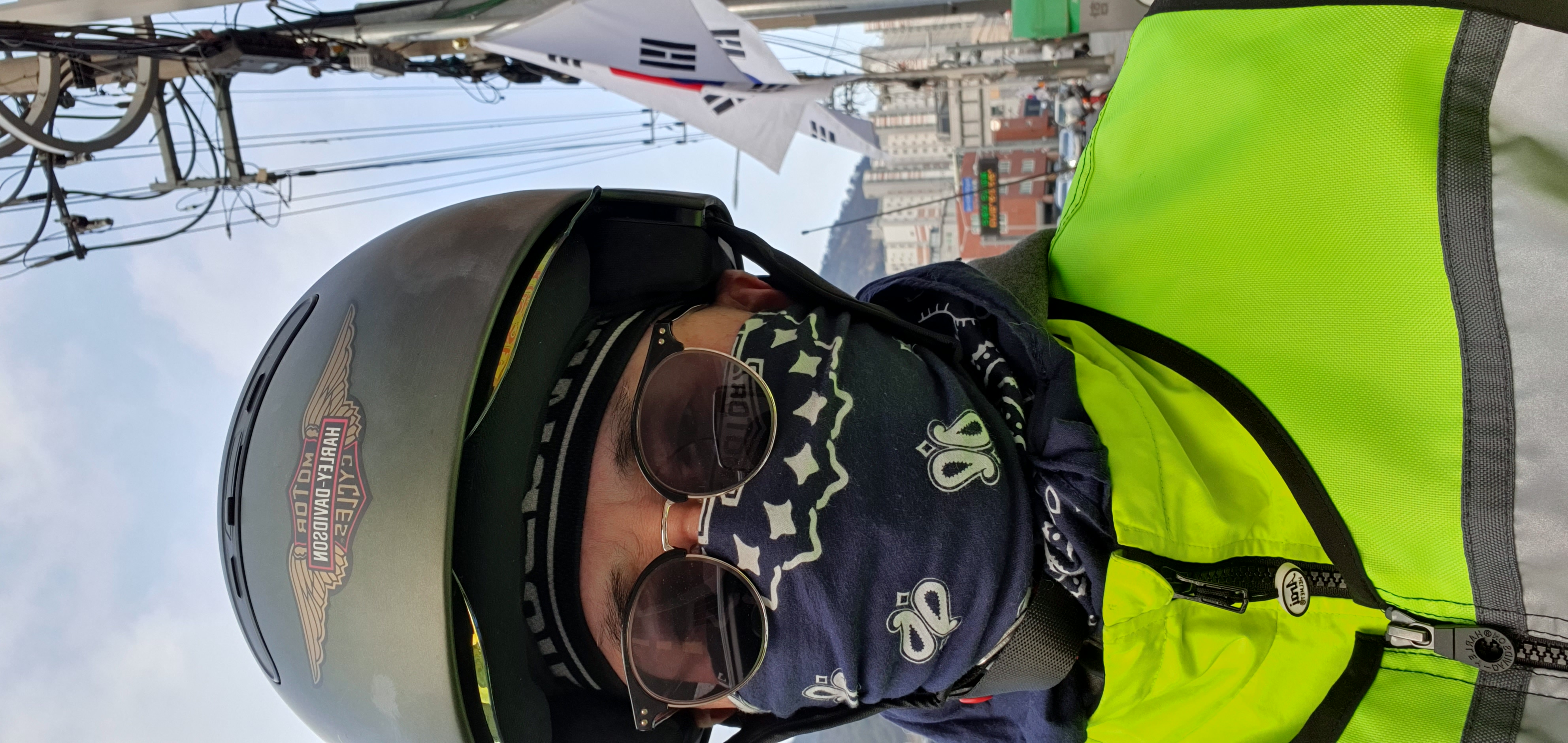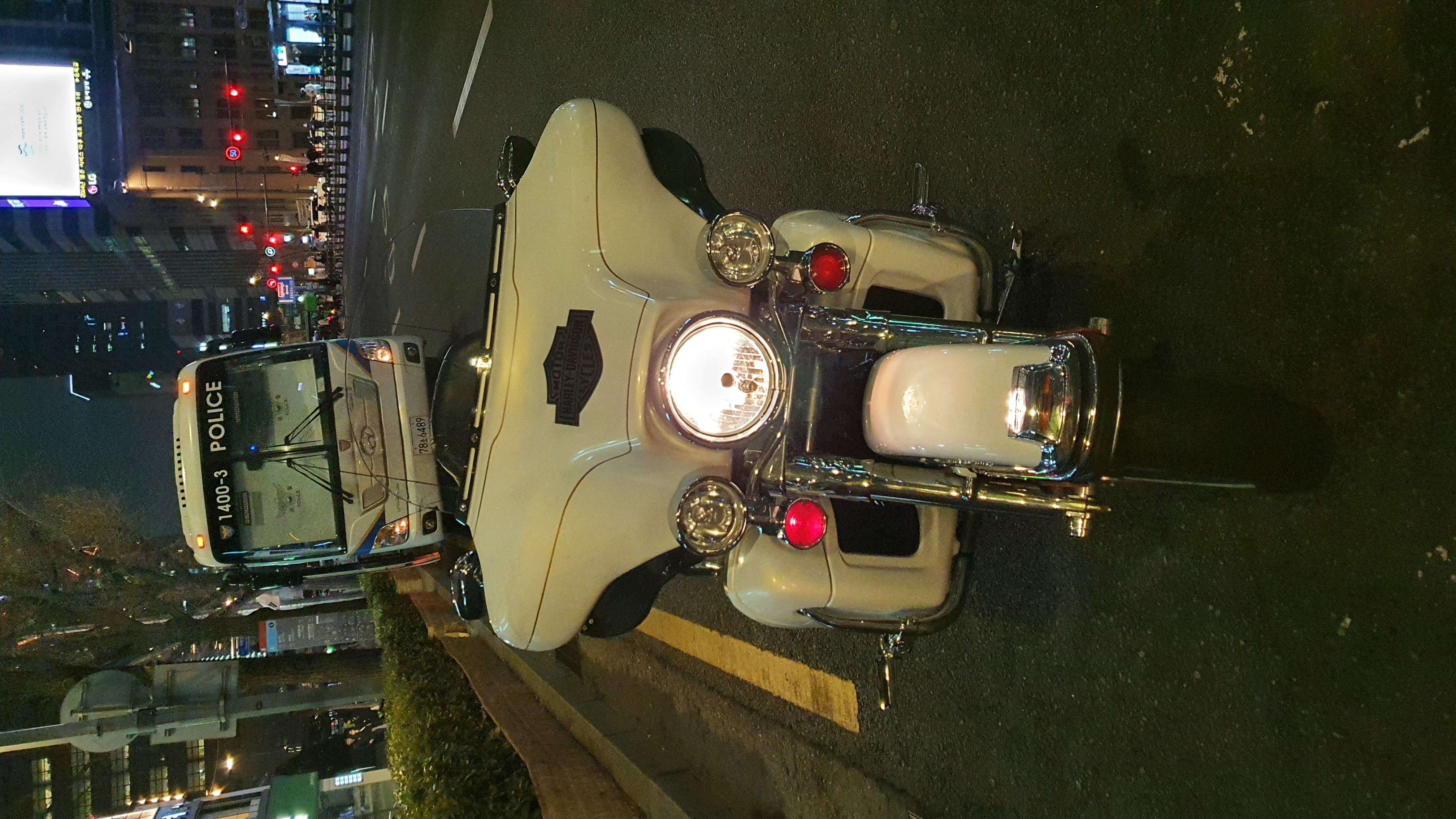 경찰버스 앞에서 폼 함 잡아보고 ..
