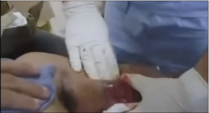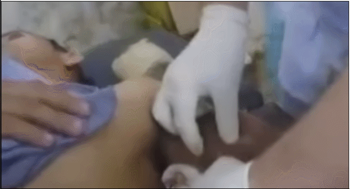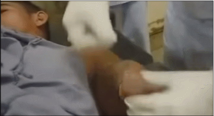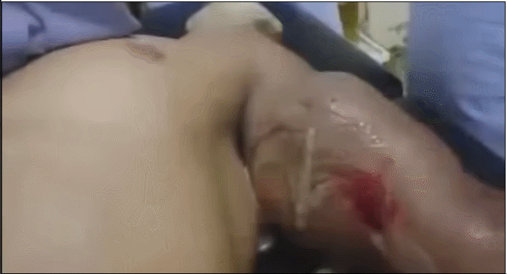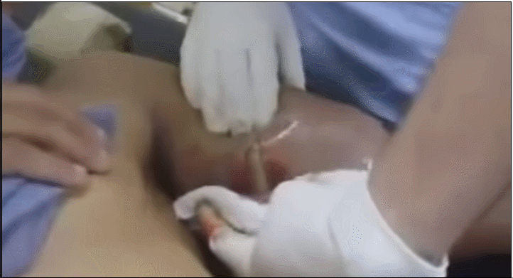 밑에는 신톨주사후 근육괴사가 일어난 환자의 팔에서 고름을 빼내는 장면.