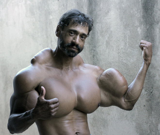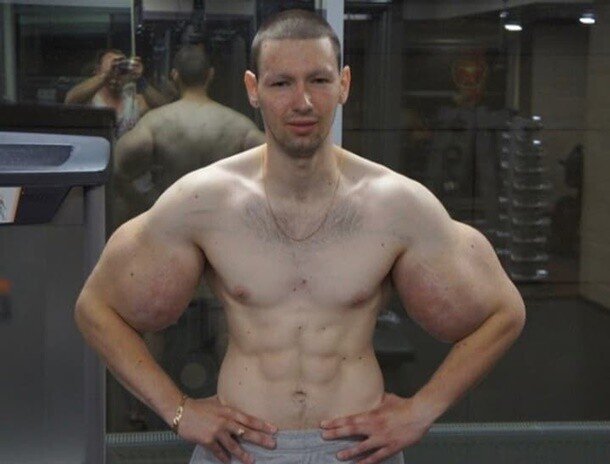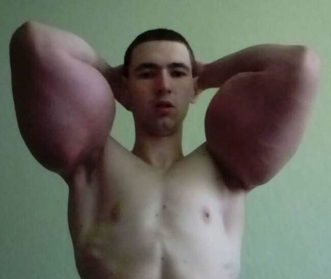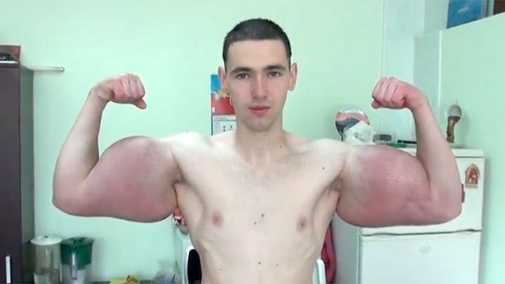 바비테레신(22)이라는 러시아 보디빌더는 가짜근육을 만들어주는 약인 신톨을 팔뚝에 주사했다가