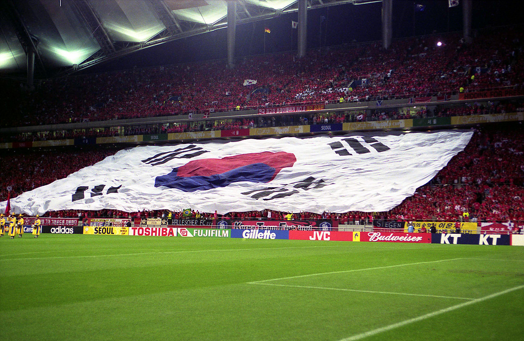 국가기록원이 공개한 '2002월드컵에서 대형태극기로 응원하는 한국응원단'.